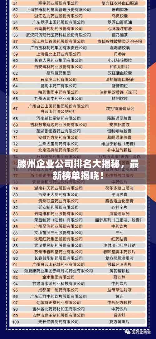 2、滕州市生物醫藥有限公司:生物醫藥產業是未來的朝陽產業,該公司憑借先進的研發技術和市場前景,備受關注。